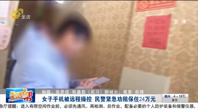女子手机被远程操控 民警紧急劝阻保住24万元