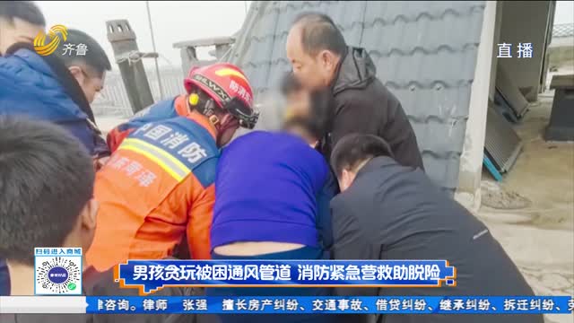 男孩贪玩被困通风管道 消防紧急营救助脱险