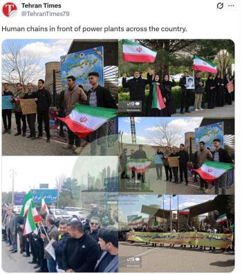 伊朗民众组成人链抗议美国轰炸 捍卫公共设施