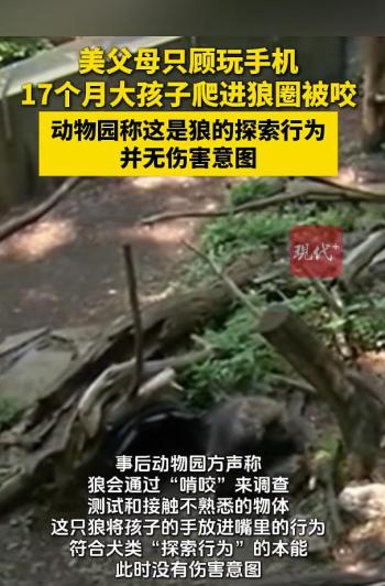 美国父母只顾玩手机 1岁多孩子被狼咬 疏忽酿成意外