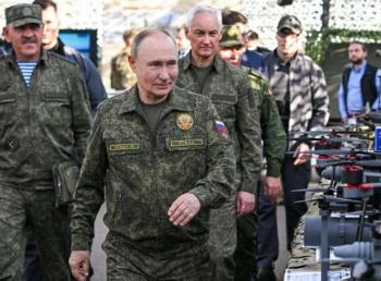普京穿军装出席俄白军演把玩手枪 演习彰显战略威慑