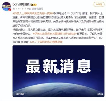 消息人士:伊美收到立刻停火提案 巴基斯坦斡旋提案浮现