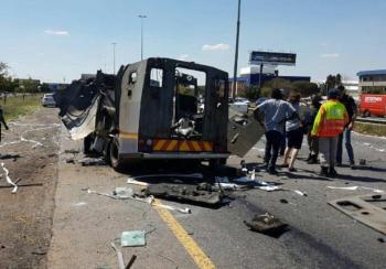 南非运钞车被劫匪炸毁 现金遭抢场面骇人