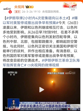 伊朗导弹2小时内4次密集砸向以本土 极限施压局势升级
