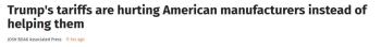 美国关税政策令本国制造业遭反噬 伤害明显超出预期
