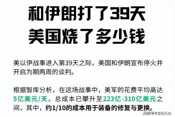 和伊朗打了39天,美国至少烧了多少钱? 300亿美元的代价