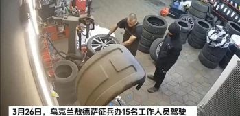 监控:乌克兰征兵人员从轮胎店强行掳走员工