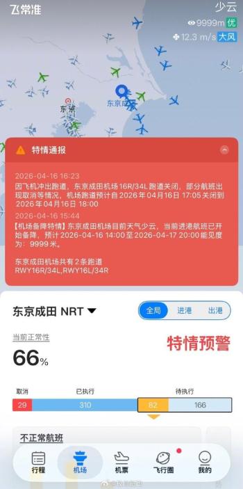 飞机冲出跑道成田机场长跑道临时关闭 航班延误影响旅客出行