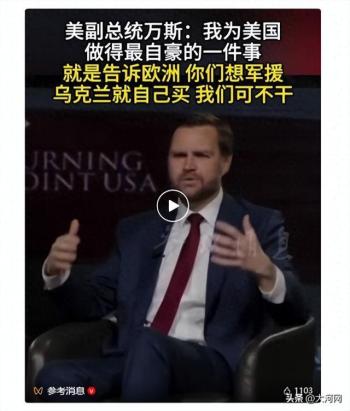 万斯称最自豪的是让欧洲自己掏钱援乌 美国不再买单