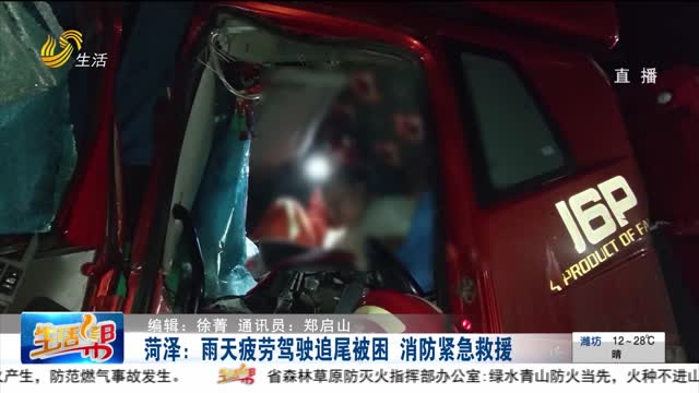 菏泽:雨天疲劳驾驶追尾被困 消防紧急救援
