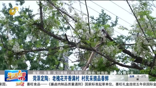 菏泽定陶:老槐花开香满村 村民采摘品春鲜