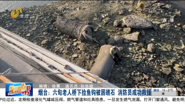 烟台:六旬老人桥下捡鱼钩被困礁石 消防员成功救援