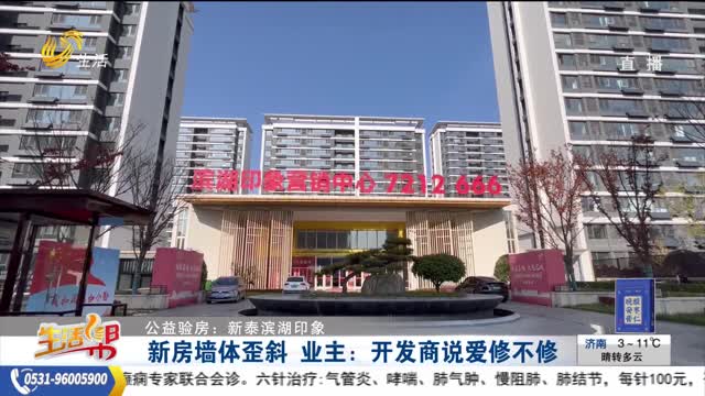 【公益验房:新泰滨湖印象】新房墙体歪斜 业主:开发商说爱修不修