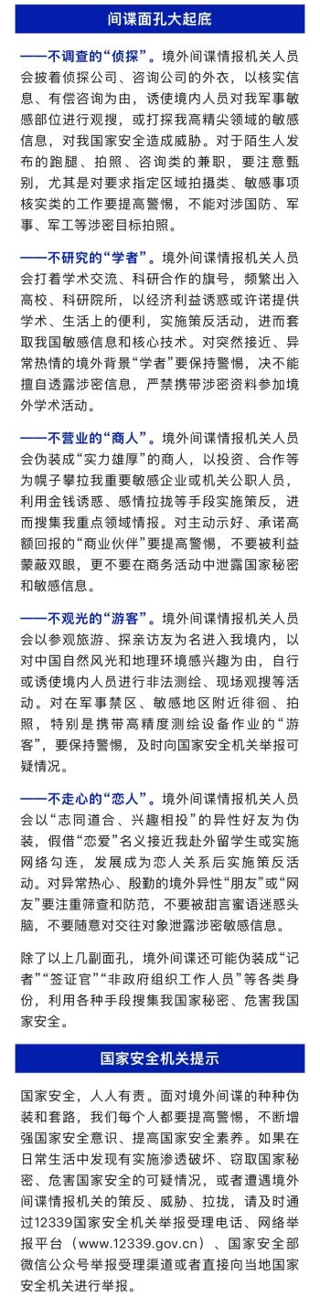 国家安全部揭露间谍的多种伪装 揭开“N副面孔”