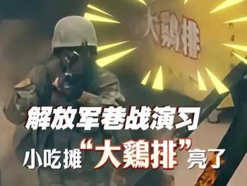 解放军巷战演习旁边大鷄排摊位亮了 繁体字引发两岸热议