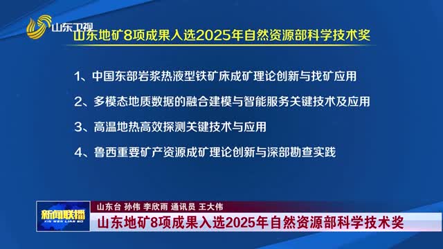 山东地矿8项成果入选2025年自然资源部科学技术奖