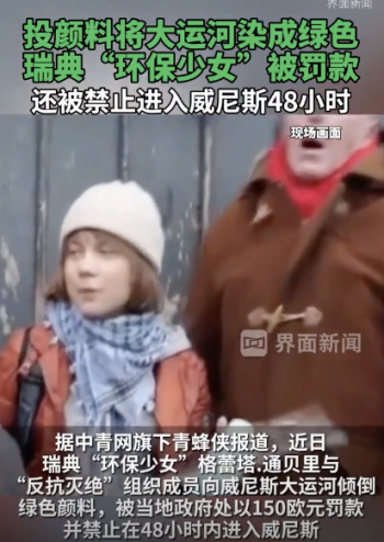 环保少女将威尼斯大运河染绿 行动引发争议!