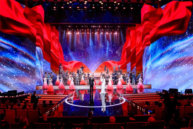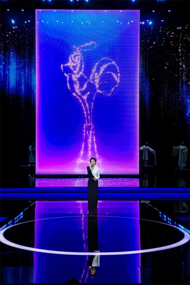 整台晚会也突破了镜框舞台的极限,与观众连成一体,设计层层升降的“银幕”与精准的装置布景,配合充满戏剧感的场景讲述,带领观众一起走进电影人丰富的精神世界。